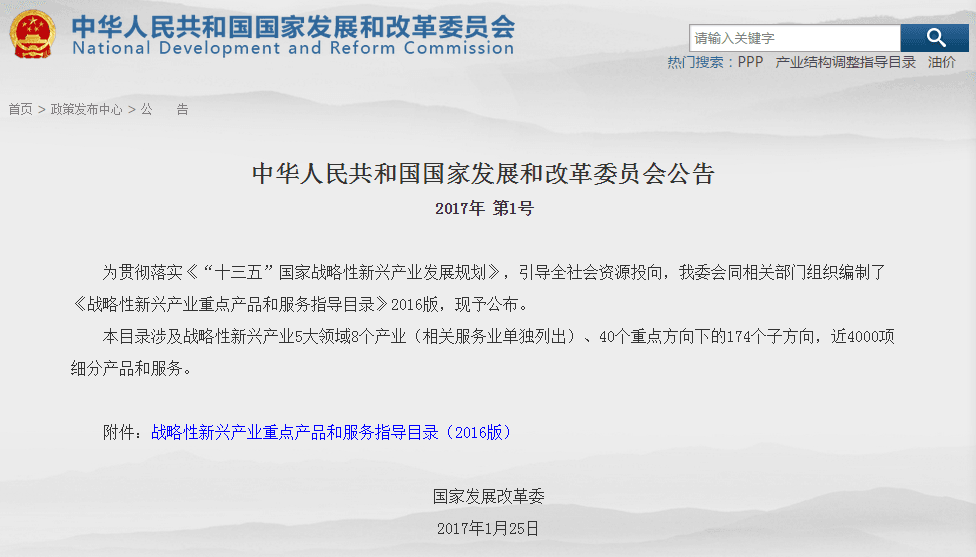 目錄是為了貫徹落實《“十三五”國家戰(zhàn)略性新興產業(yè)發(fā)展規(guī)劃》,引導全社會資源投向,涉及戰(zhàn)略性新興產業(yè)5大領域8個產業(yè)(相關服務業(yè)單獨列出)、40個重點方向下的174個子方向,近4000項細分產品和服務。目錄將“新材料產業(yè)”作為一個獨立重點方向,細分為新型功能材料產業(yè) 、先進結構材料產業(yè)、高性能復合材料產,其中對表面功能材料進行了詳細的表述: